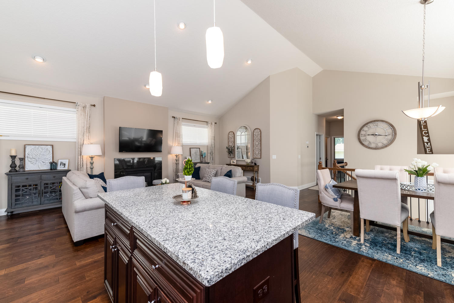 Absolutely Stunning 2017 Built Home! Shows Like a Model! Dramatic spaces, bright and open layout, high end flooring, finishes, upgrades and more, all combine to make this a wonderful place to call home! As you enter you will love the vaulted ceilings of the entire main level living area. Your dining area easily accommodates a large table, perfect for celebrating a special occasion. Or warm up to the fireplace on a quiet weeknight in the living room. The chef of the home will love the expansive kitchen that offers granite counters, great lighting, 42 inch upper cabinets, lots of storage, custom subway tile backsplash and a center island perfect when entertaining. Take the fun outside to the deck to enjoy your new setting! Imagine relaxing here on a sunny afternoon! The main level features three bedrooms on one level, each with large closets, and main full bathroom with nice upgrades. Your owners’ suite features a tray ceiling, walk in closet, and private bathroom complete with a dual sink, granite vanity, jetted tub, and high end marble shower surround. Proceed to the lower level and you will continue to be impressed. Easily host the next gathering of friends and family in this space! Notice the 9 foot tall ceiling that creates a bright and inviting family room. This level conveniently walks out to the back yard and patio, too! The home’s fourth bedroom on this level can be used as a guest room or office depending on your needs. A full bathroom and impressive laundry room also on this level. Entire home has prairie style interior doors, high end lighting, fixtures and special touches throughout. Notice the extras you won’t find in most new construction including gutters, concrete driveway, lawn, landscaping, inviting deck, lower level patio and more! Walk to Nearby Lake Minnetonka! Ask about Mound Dock program and Mound’s 33 parks with various lake access points!