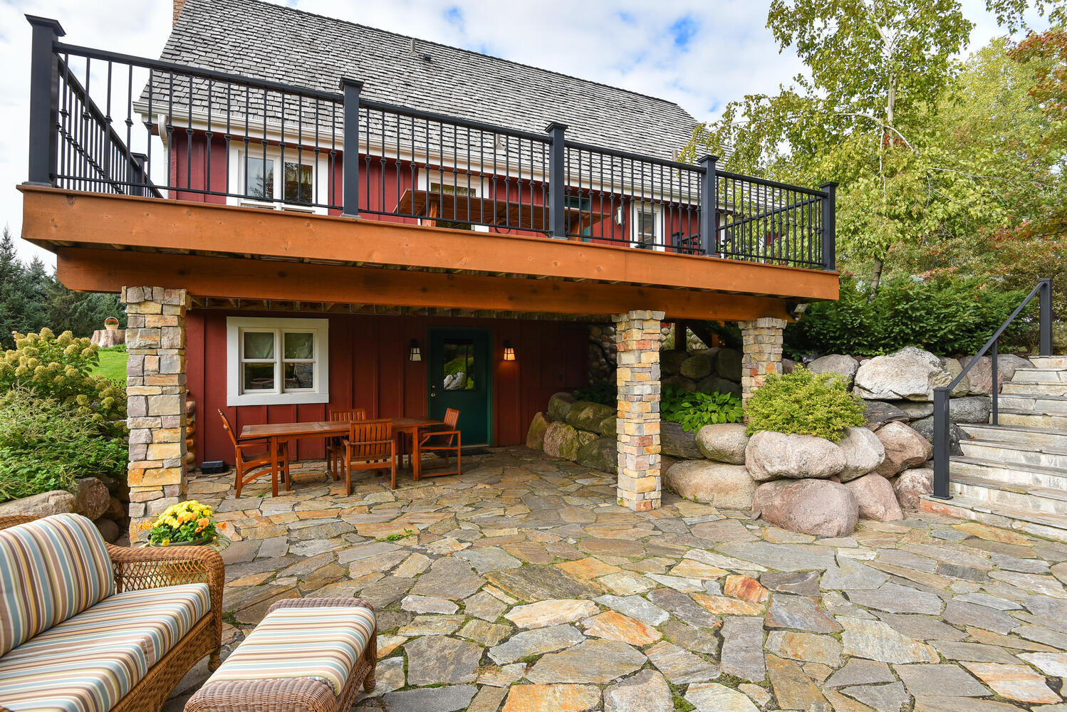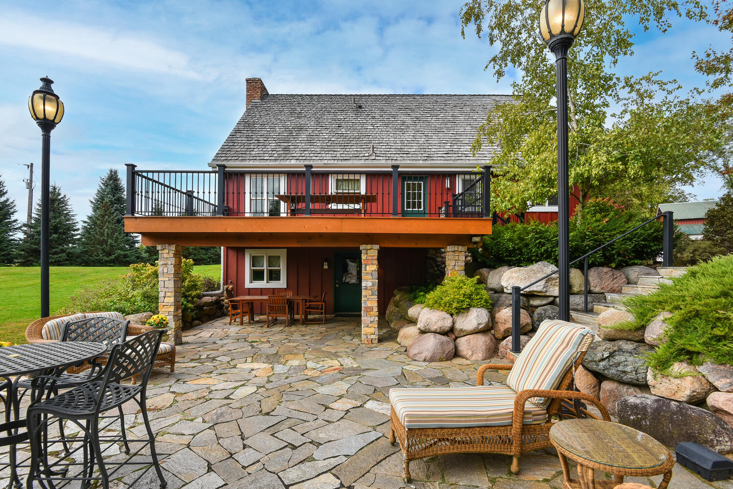 Own your own piece of paradise! This idyllic 34 acre retreat offers a mix of 14 wooded and 20 open, rolling acres. Home offers many updates, vaults, private owners loft, custom library built ins made of black ash, in floor heat, walk out lower level, RO, Roof 2014, newer cedar siding, granite and more! Stunning outdoor oasis features an expansive deck with amazing views. Patio custom designed to enjoy your beautiful setting, complete with pizza and bread oven and high end Viking grill. The delicious pizzas baked here were made using the vegetables, herbs, and even the beef grown on this land! Yes, there are additional areas for livestock including a horse stall (adjacent to pole shed). The trees are a mix of pine, oak, and gorgeous maples that have been tapped for syrup in past years! Plus wild apple trees, pear trees that reach to the stars, hazelnut, butternut, hickory & more! The 40×80 pole shed is central for any and all projects you need to get done with heat, water, drain, concrete floor (epoxy floor). Imagine taking a walk near the creek in your own woods, then relaxing on the inviting front porch to take in your new setting! Welcome Home!